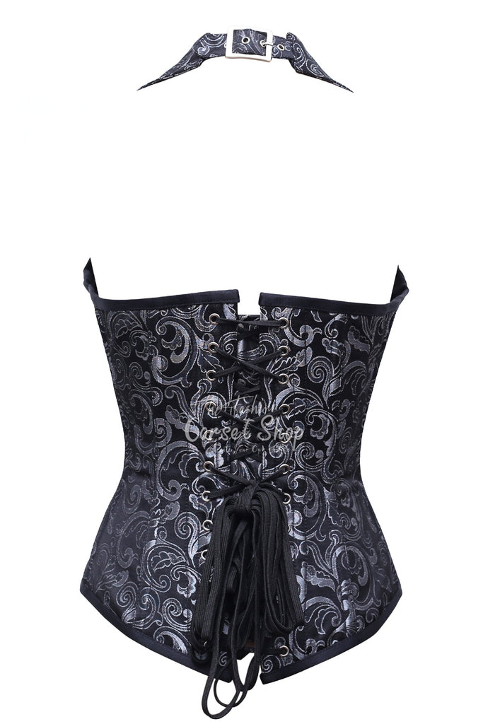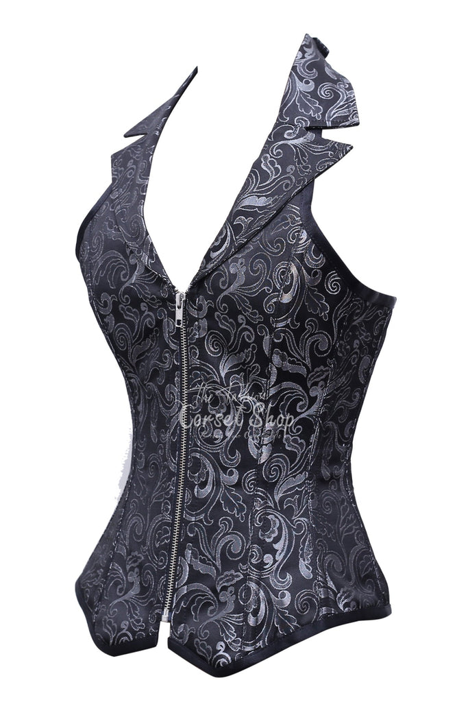 Paltrow Black Silver Brocade Overbust Corset With Zip Front