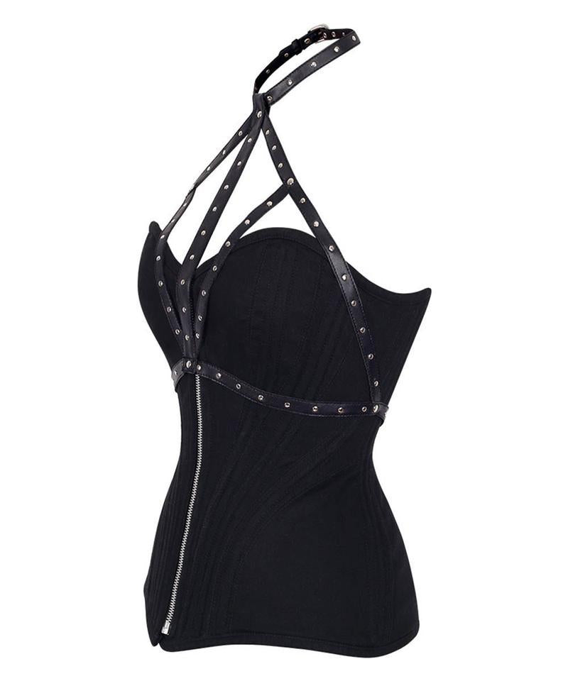 • Spiral Steel Boned Black Cotton Overbust Corset
